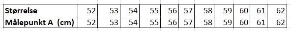Her kan du se størrelsestabellen for BR ridehjelmene.