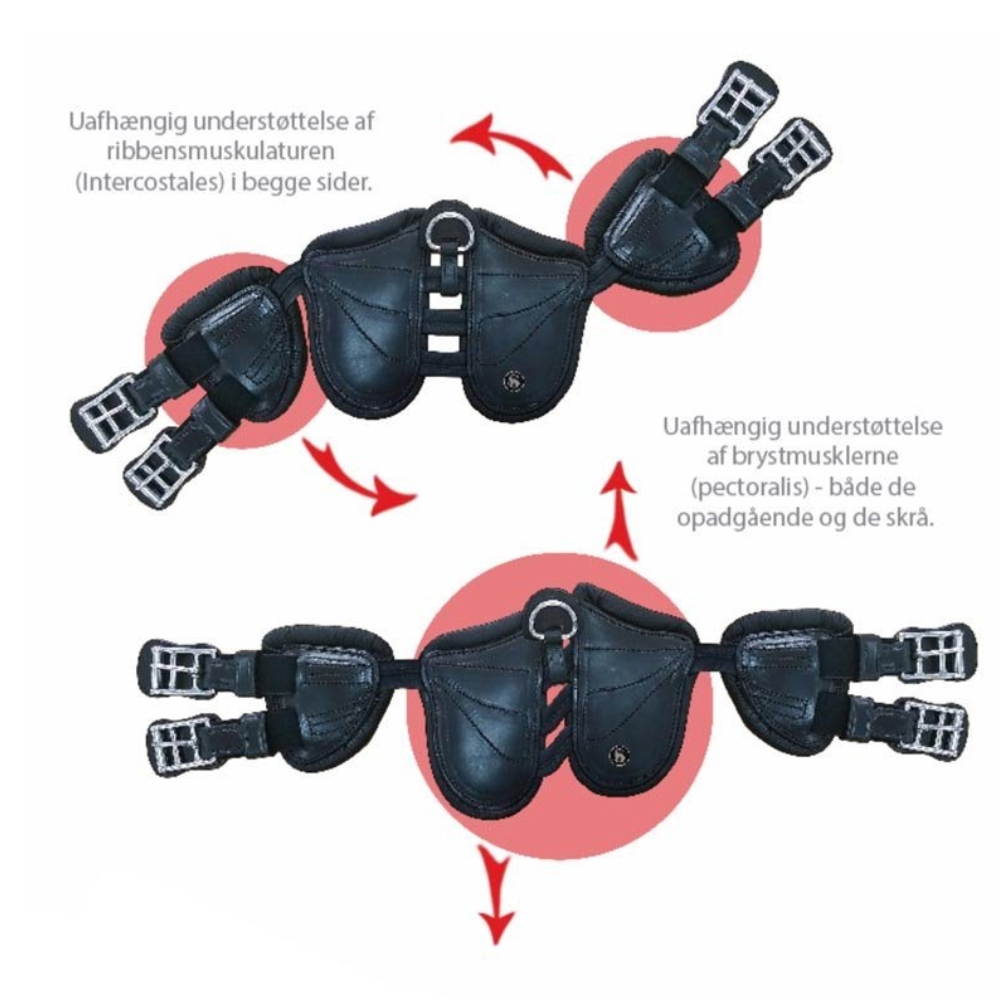Den unikke opbygning sikrer, at brystbenet ligger frit, hvilket giver hesten maksimal bevægelsesfrihed uden at gå på kompromis med stabilitet og støtte. Resultatet er øget komfort, bedre præstation og en mere afslappet hest i arbejdet.