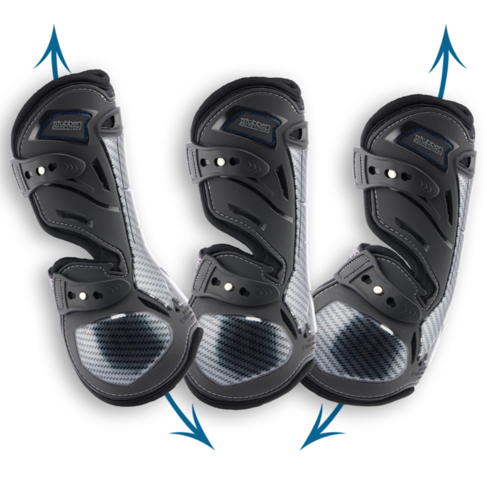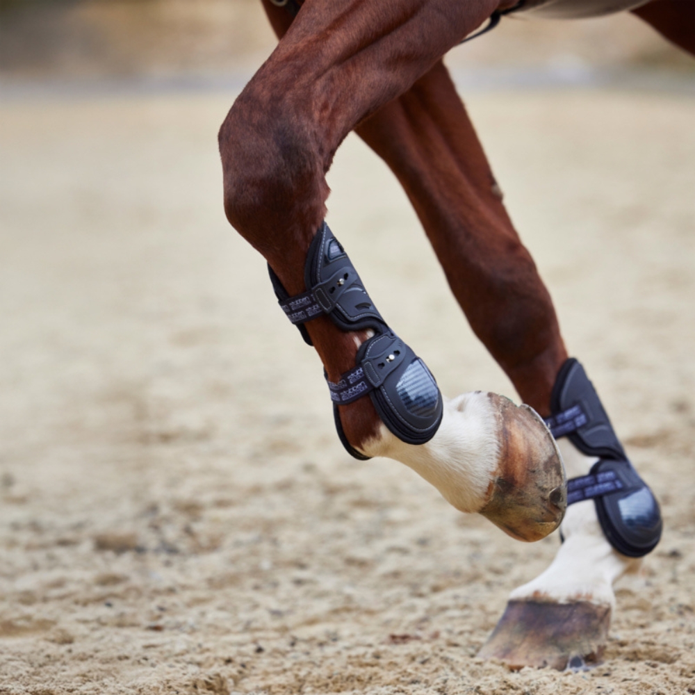 Den avancerede to-komponent sprøjtestøbningsproces forbedrer gamachernes “Living Hinge”-system, så de følger hestens naturlige bevægelser. Det dobbelte skaldesign sørger for, at gamacherne er bløde og fleksible i hoveddelen, mens ekstra stærkt materiale er placeret strategisk på særligt udsatte områder.